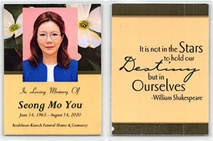 고 최애옥 선배님 Wake 일정 Sonia Aiok Lee (영어 이름)